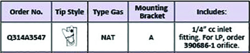 Q314A. NAT/LP. *** Please pay close attention to the tip style and flame direction before ordering ***